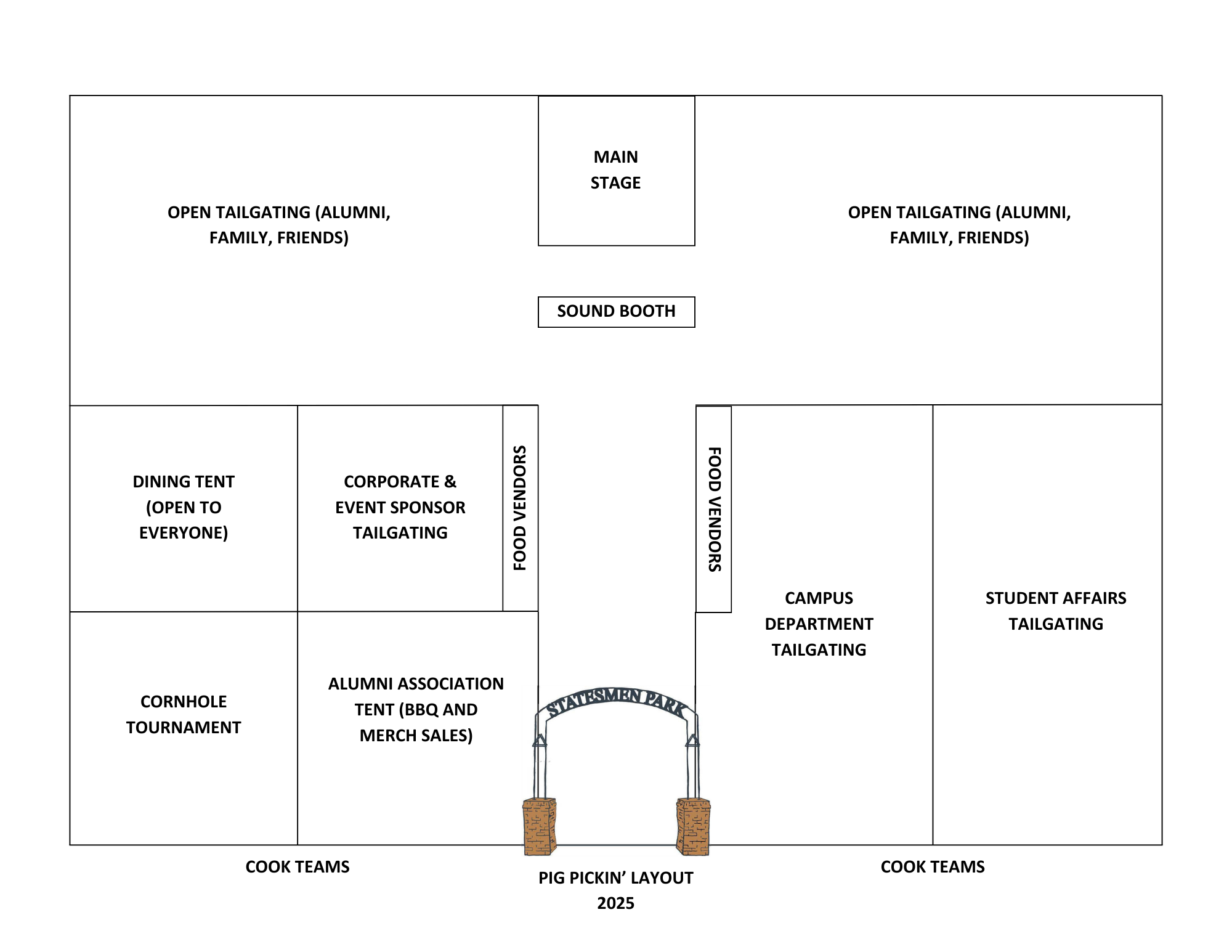 Tailgating in Statesmen Park has become a Pig Pickin’ tradition. Anyone and everyone is invited to set up a tent and hang out. While you’re in the park, enjoy the live entertainment on the main stage, participate in a pep rally with the Delta State cheerleaders and marching band, and grab a treat from one of the food vendors. And don’t forget to stop by the Alumni Association tent to purchase a BBQ plate and pick up some Delta State swag!